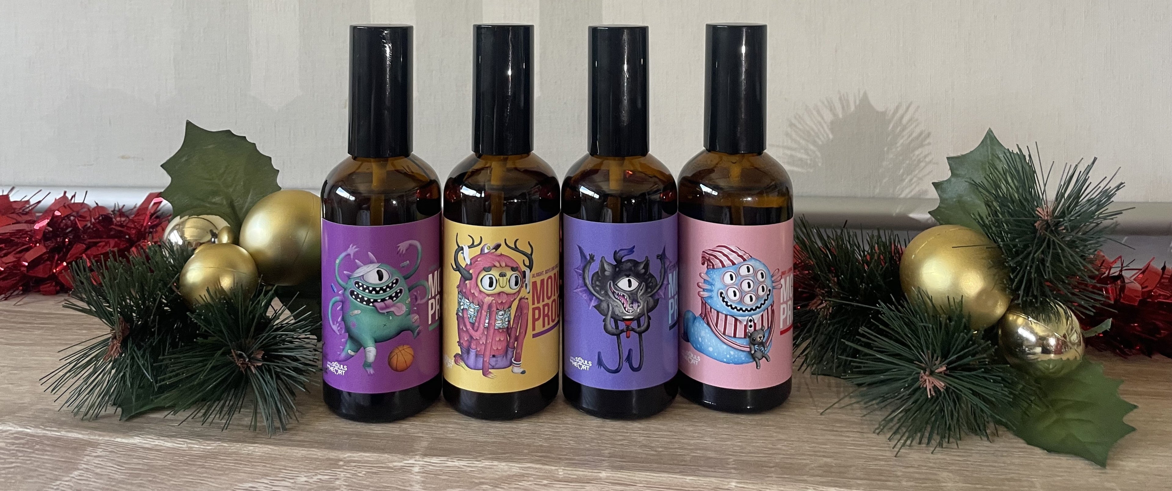 Introducing MONSTER PROOF, an aromatherapy room spray designed to help children drift off to sleep more easily and enjoy a deeper, more restful night’s rest. Crafted with 100% organic essential oils, these calming formulas helps to soothe emotions, reduce anxiety, and promote relaxation—perfect for little minds that are creative and full of energy at bedtime.